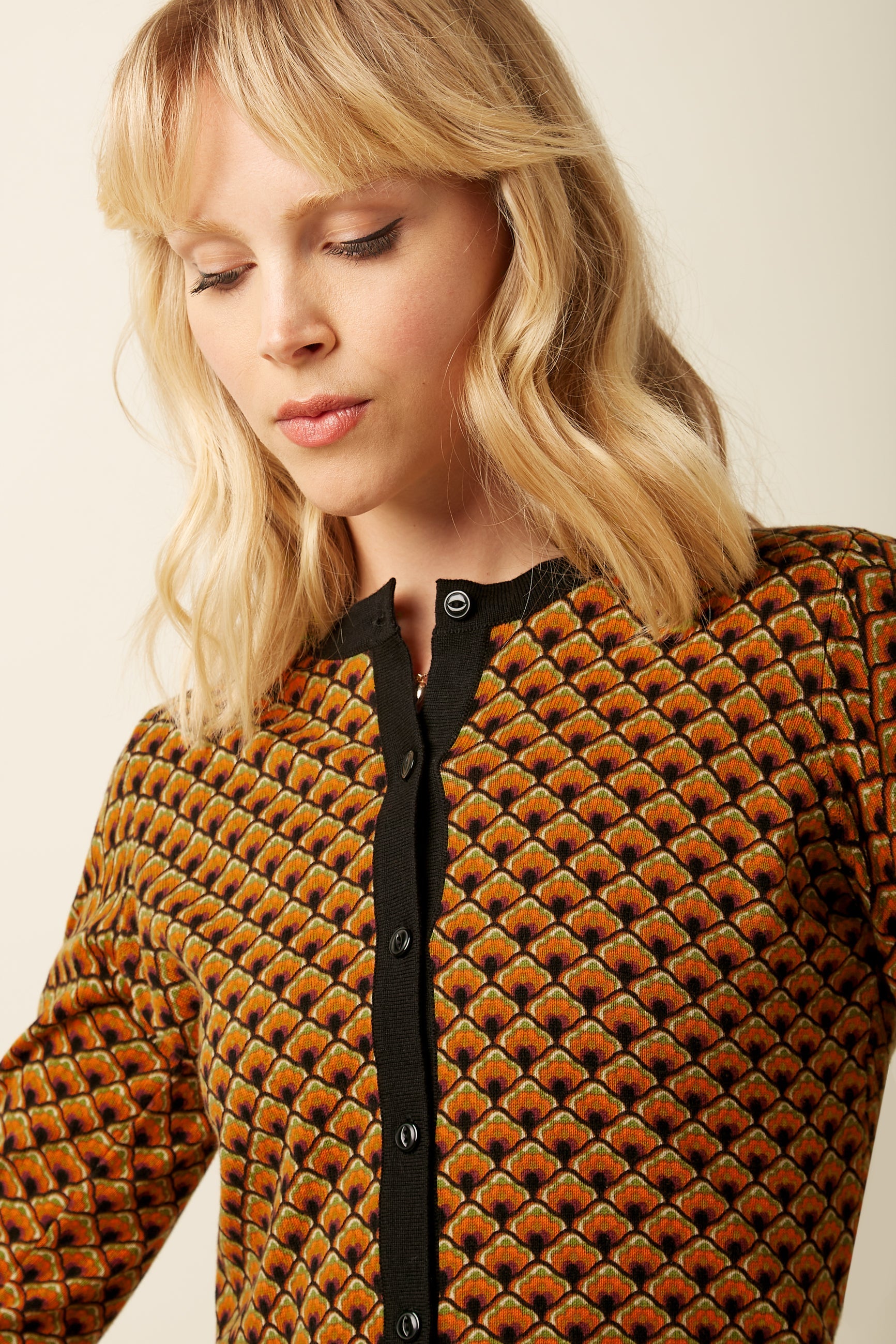 Die Cardi Roundneck Frio bietet dir gemütlichen Komfort mit elastischem Baumwollstrick und gerippten Abschlüssen. Mit langen Ärmeln, Rundhalsausschnitt und Knopfverschluss, veredelt durch ein auffälliges grafisches Muster – eine vielseitige Ergänzung für deine Garderobe.