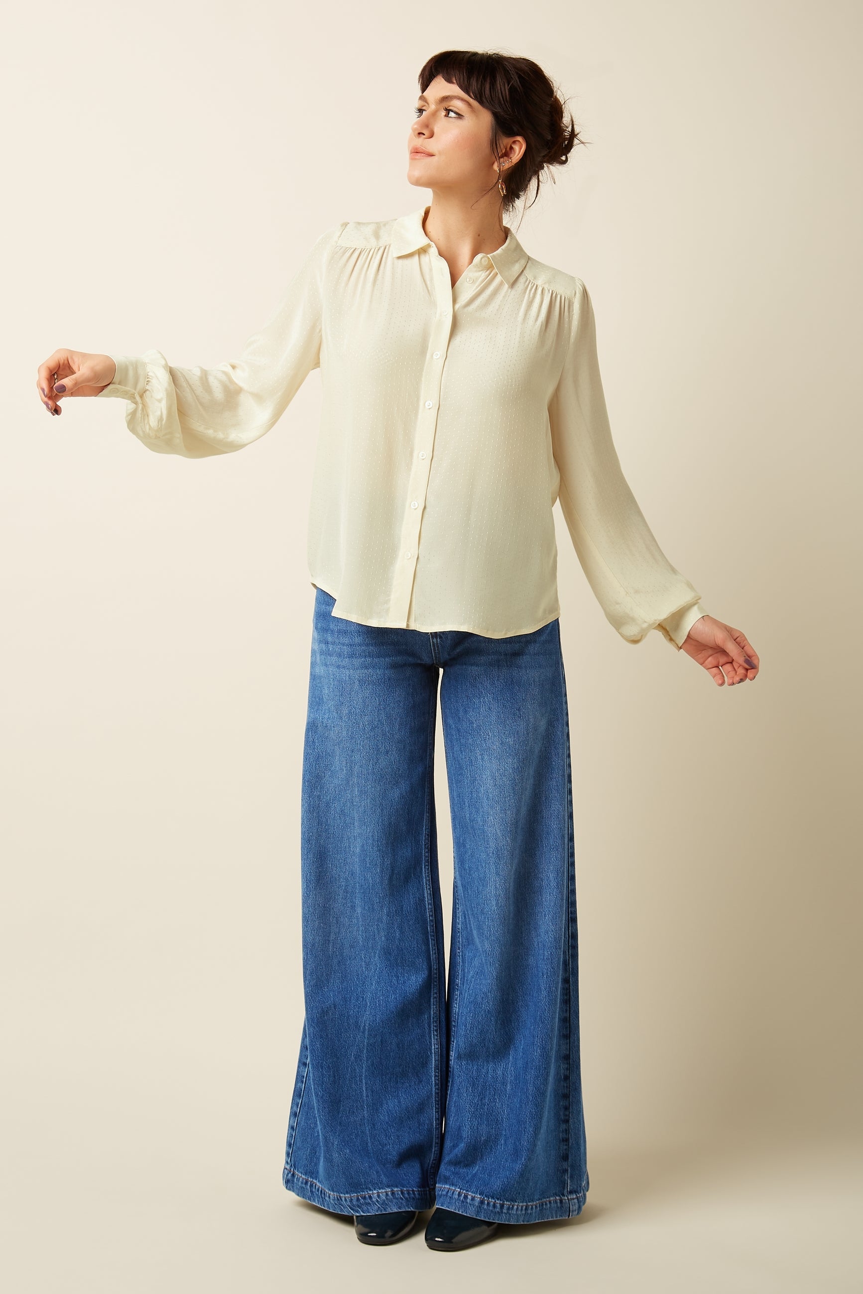Die Carina Bluse Sista vereint klassischen Kragen und Knopfverschluss mit langen Ärmeln samt Manschetten und feinen Falten von der Schulterpasse bis zu den Ärmeln. Aus weicher gewebter Viskose – für einen eleganten Look und angenehmen Tragekomfort. Farbe Ivory
